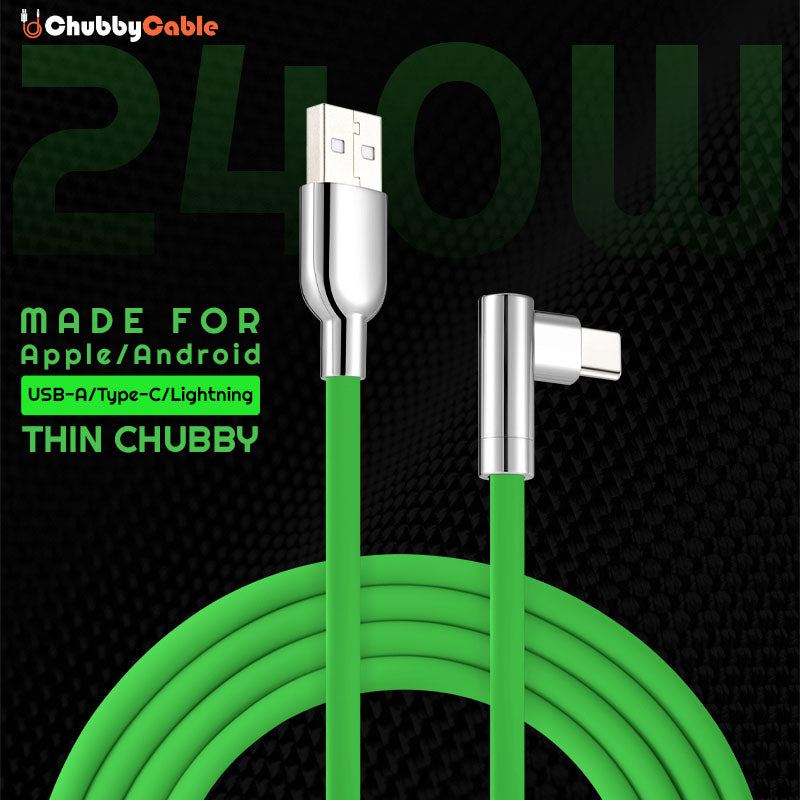 "Thin Chubby" 240W Charging Cable - 90° Elbow Design & Mirrored Connector
